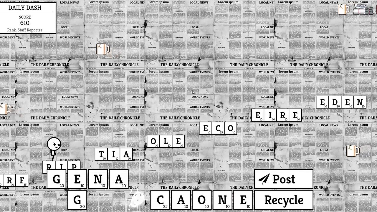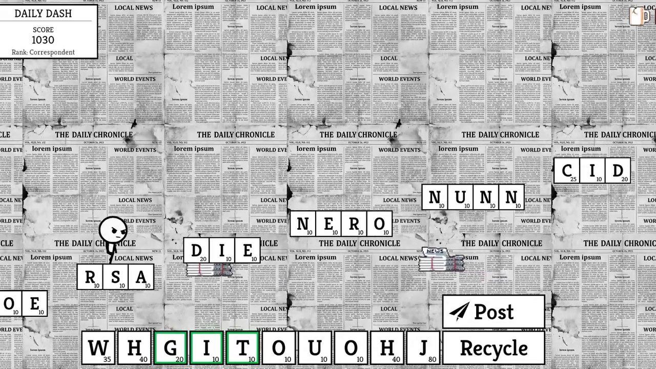 Word Dash is a typing challenge arcade game where every letter counts. Place tiles, build words, and keep your run alive.